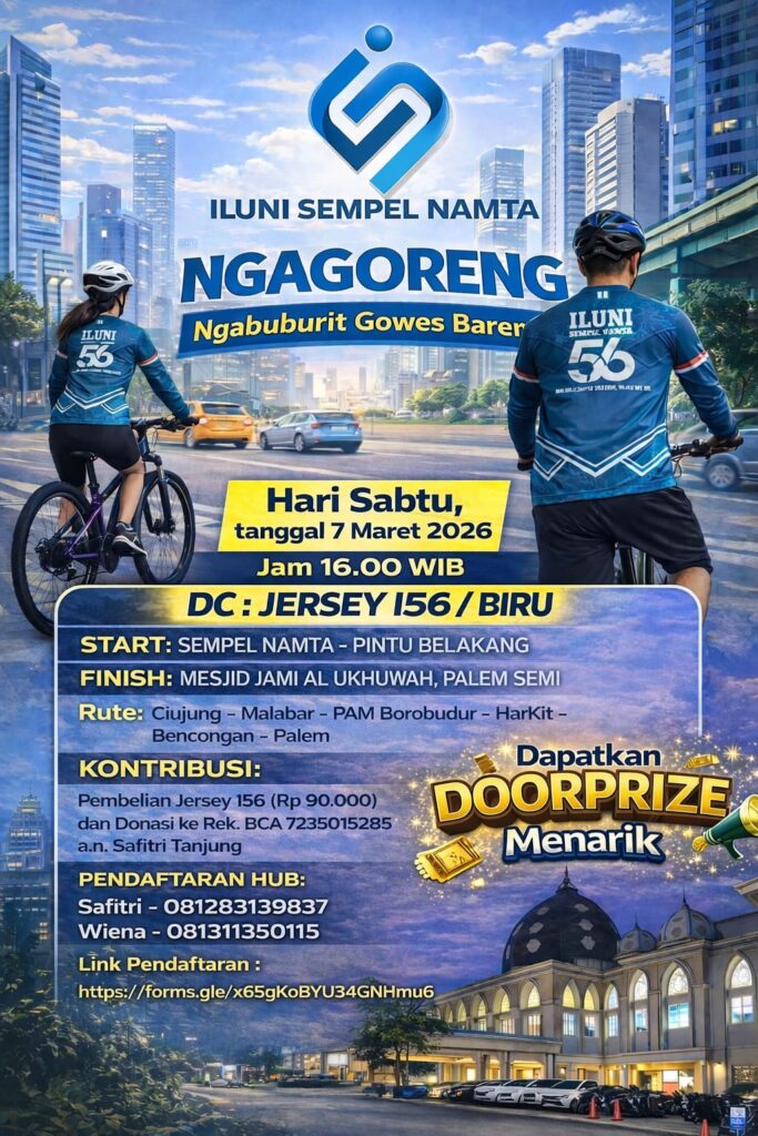 Di bulan Ramadhan ini kami dari bidang Seni Budaya dan Olahraga (SeNiOr) akan mengadakan kegiatan NGAGORENG (Ngabuburit Gowes Bareng) ILUNI Sempel Namta..🚴🏼‍♀️🤍💙🚴🏼‍♀️